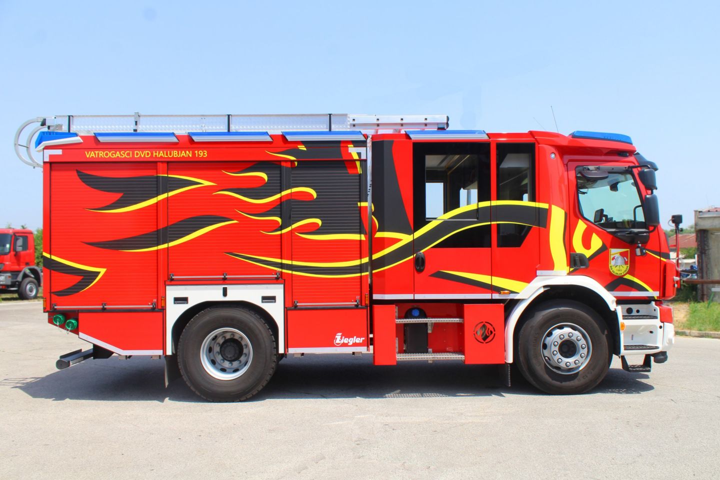 Odabir podvozja vozila marke Volvo te sam dizajn i konstrukcija ovo vozilo čine drugačijim od onih koja se inače nabavljaju za vatrogasne potrebe te smo i na taj način pomakli granice i možda pokrenuli neke nove trendove u hrvatskom vatrogastvu.” kaže predsjednik DVD-a Halubjan Sanjin Blažević.